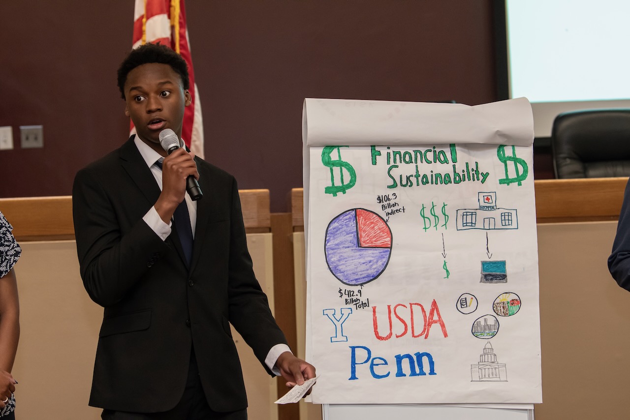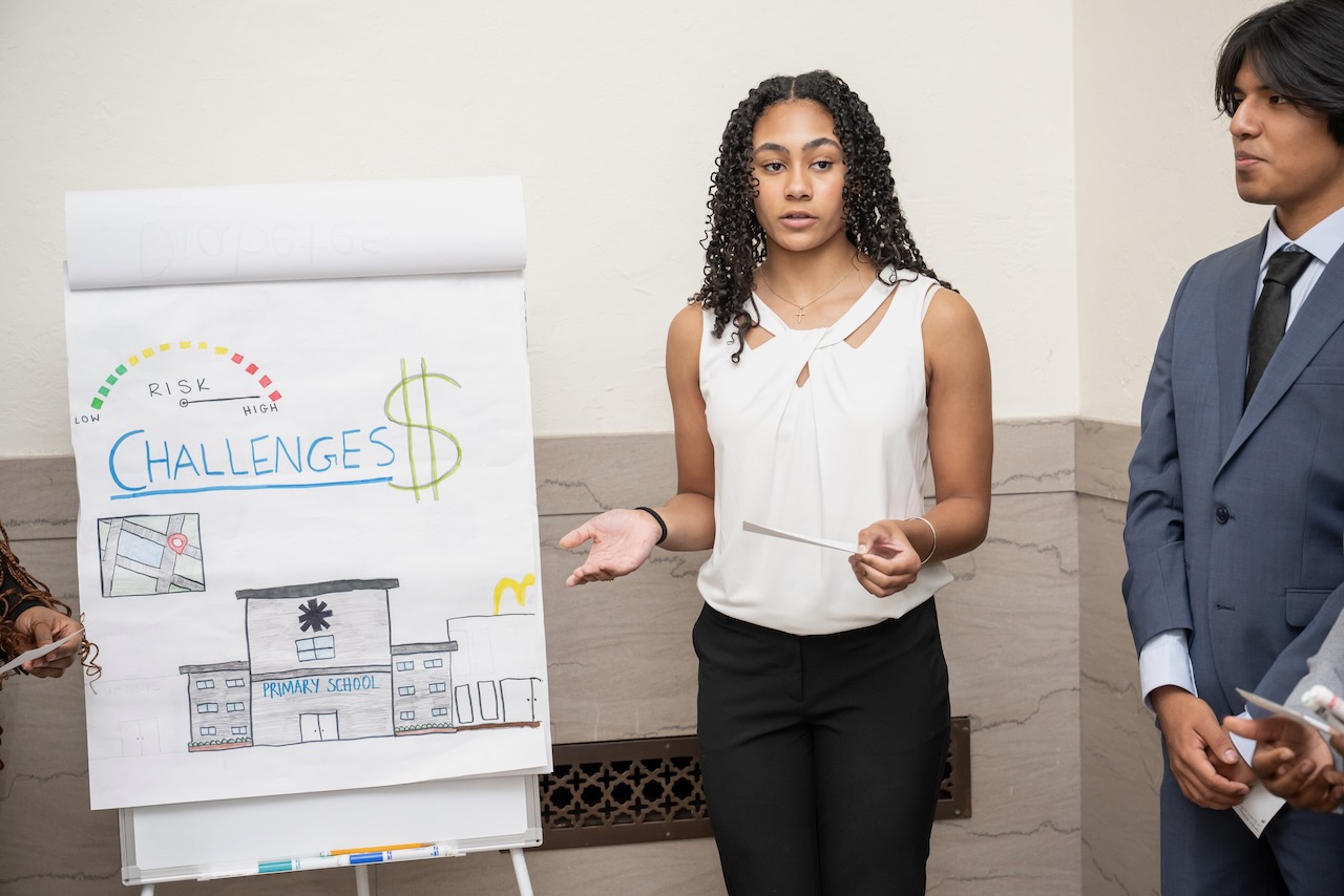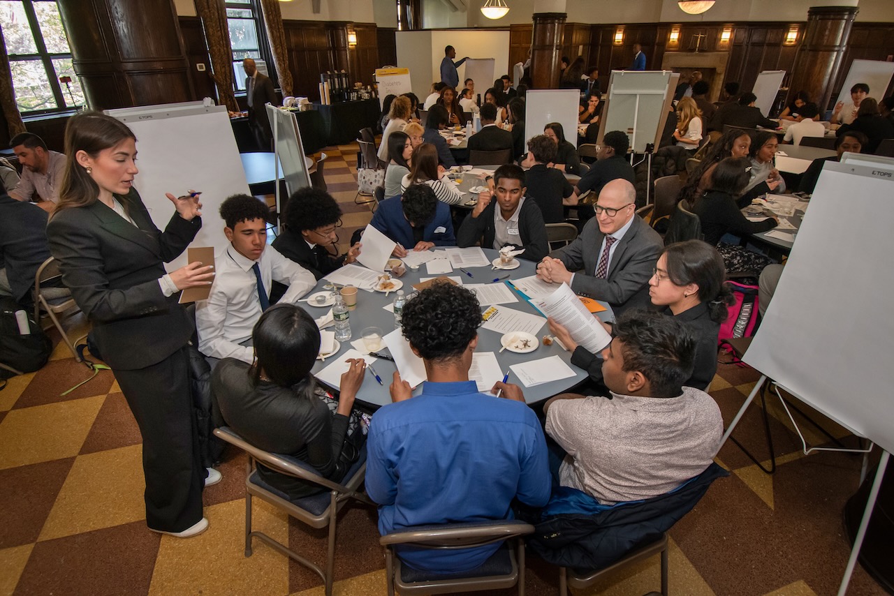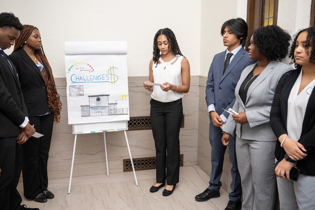 High school teams evaluate the challenges presented in Harvard Business School cases and present their solutions to a panel of judges. more To address the fact that 25 percent of today’s jobs did not exist 2 years ago and to recognize the impact that emerging technologies and globalization have on the way we think about work, our organization introduced this annual high school competition. Our “Olympics” provide 150 students on high school teams from throughout the county the opportunity to analyze graduate business school cases, engage in group dynamics and present their solutions to a panel of judges composed of leaders from the business, educational and legal communities.