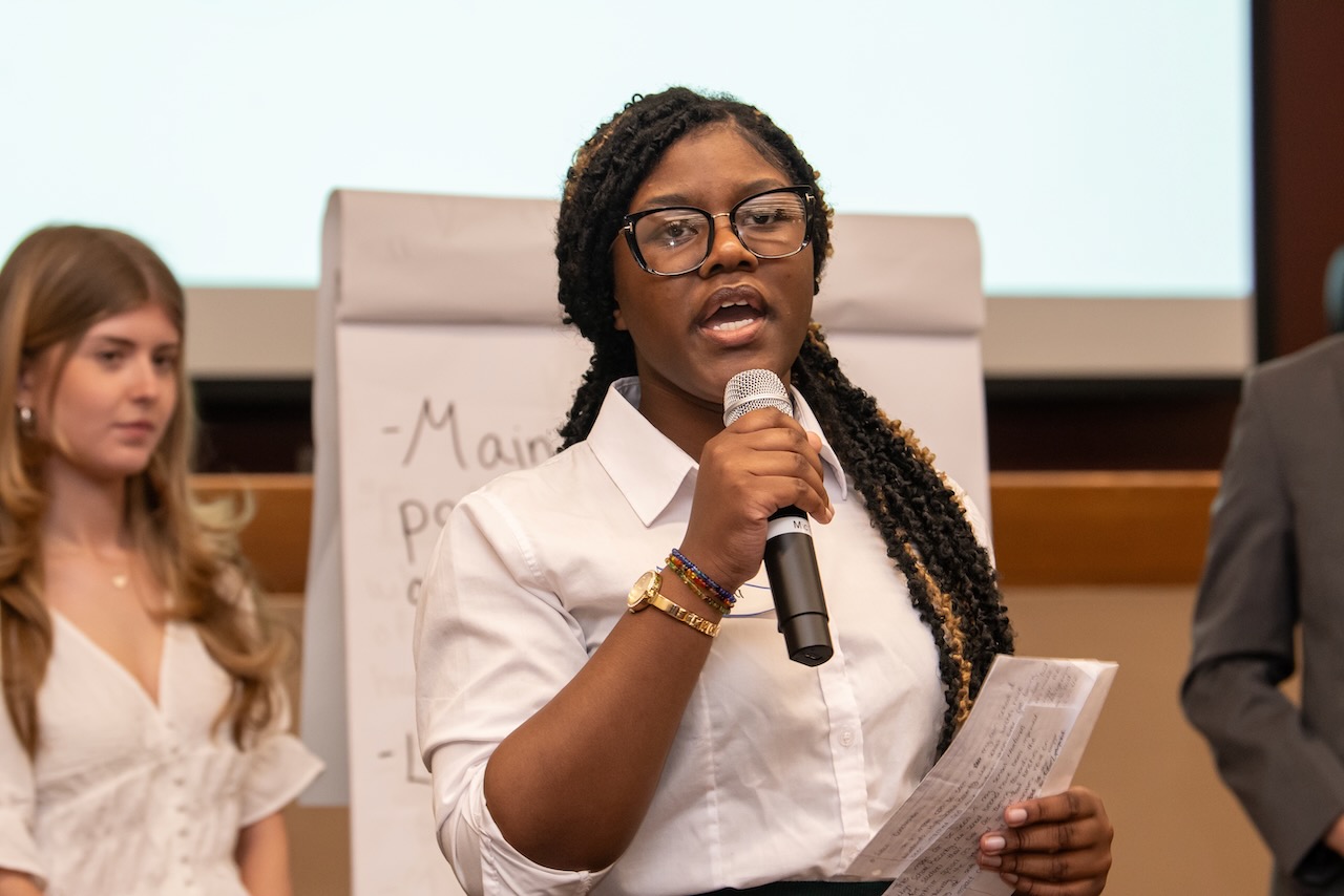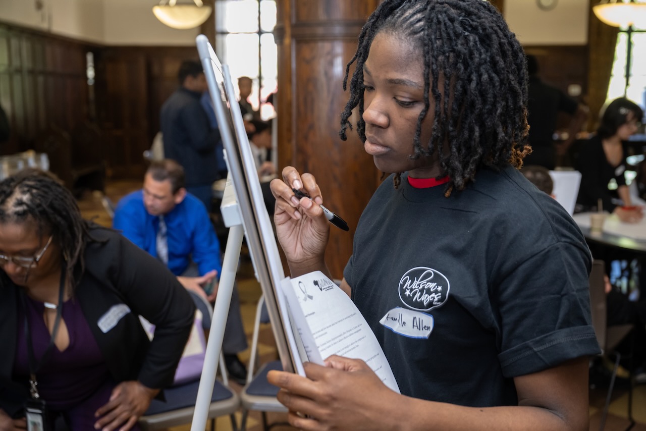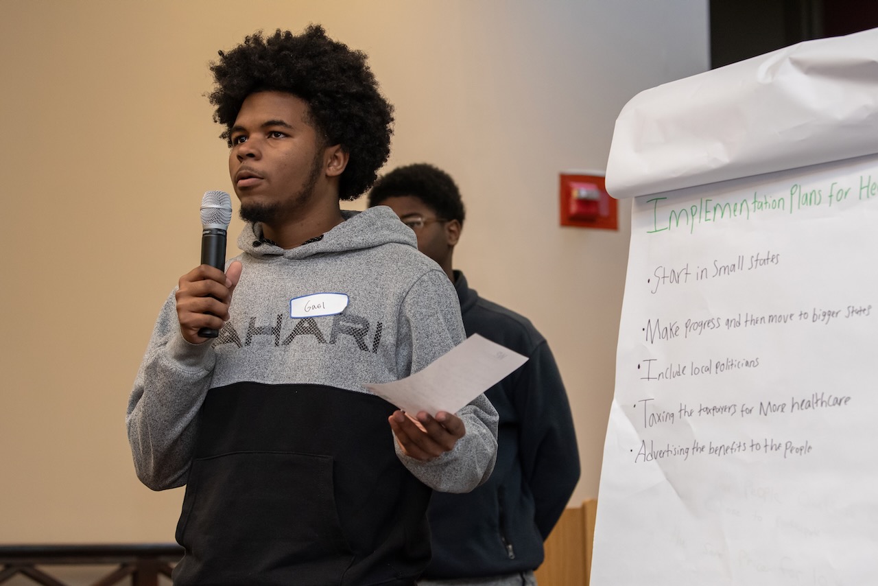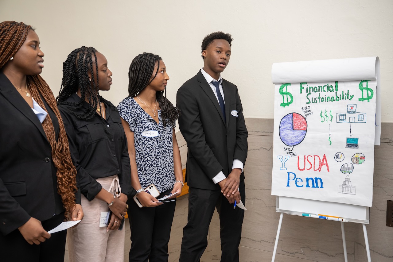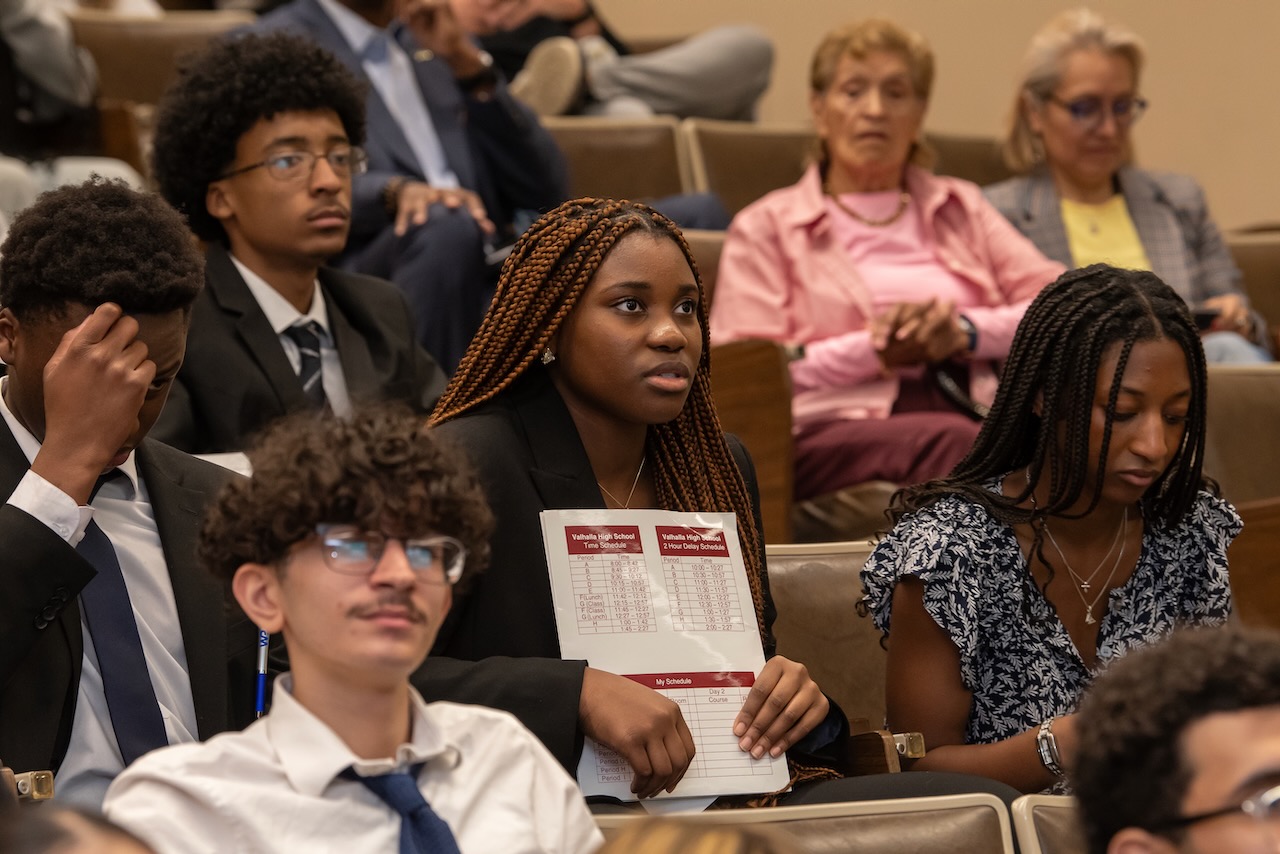 High school teams evaluate the challenges presented in Harvard Business School cases and present their solutions to a panel of judges. more To address the fact that 25 percent of today’s jobs did not exist 2 years ago and to recognize the impact that emerging technologies and globalization have on the way we think about work, our organization introduced this annual high school competition. Our “Olympics” provide 150 students on high school teams from throughout the county the opportunity to analyze graduate business school cases, engage in group dynamics and present their solutions to a panel of judges composed of leaders from the business, educational and legal communities.